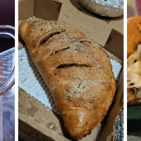 Pizza with your choice of up to two items, folded in half and topped with garlic butter, herbs and romano cheese