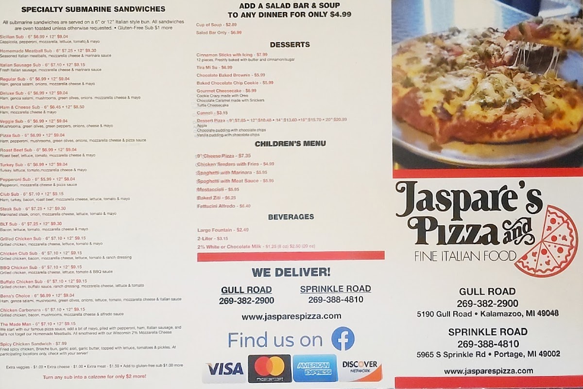 Jaspare's Pizza & Italian Foods Menu (2025 Update)